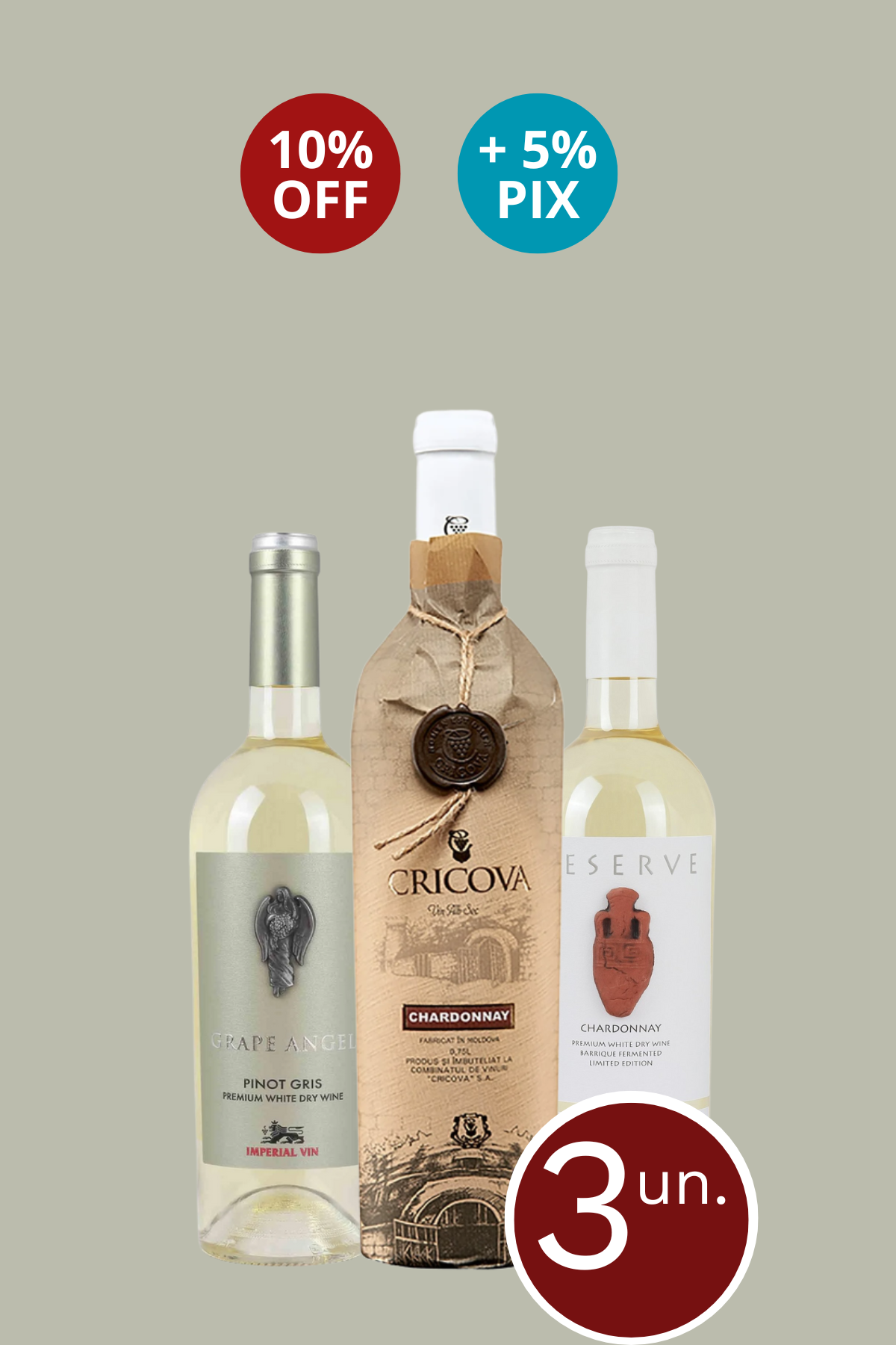 Vinhos Cricova Hirtie Chardonnay, Grape Angel Premium Pinot Gris e Imperial Vin Reserve Chardonnay